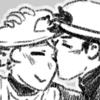 Description: abe pulling mihashi close and smooching him on the forehead.