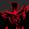 Description: stolas in his eldritch form, black with red outlines, mouth open revealing many teeth.